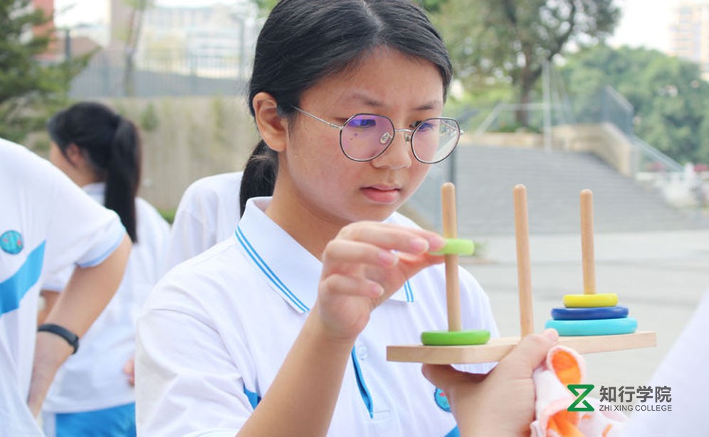 時間緊,任務(wù)重,團隊組建完畢,我們馬上進入了第一個競爭單元--漢諾塔,這是一個考驗智慧與協(xié)作的項目,在一塊木板裝置上,有三根桿(編號A、B、C),在A桿自下而上、由大到小按順序放置5個大小不同的圓盤,游戲的目標(biāo)是把A桿上的圓盤全部移到C桿上,并仍保持原有順序疊好??此坪唵蔚挠螒颍铧c難倒了我們一群小學(xué)霸,有壓力,才有動力,最終大家動腦、動手、動身,嚴(yán)格計劃,合理分工,才邁過了這一關(guān)。