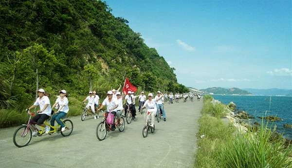 解除鋼筋混凝土的禁錮,讓我們一起放飛心情!當(dāng)雙人單車在美麗的沿海公路緩緩前行,海風(fēng)吹拂你的黑發(fā),眼前是寬廣的蔚藍(lán)色的海洋,把生活的煩惱先放一放;快樂有時(shí)真得很簡(jiǎn)單!單人車、雙人單車、3人單車,甚至4人單車,騎行5公里左右,到達(dá)深圳看海最美的圣地——鹿嘴山莊25米高的懸崖上看海;中途參觀世界大學(xué)生運(yùn)動(dòng)會(huì)帆船比賽場(chǎng)館及廣東第一游艇會(huì)(浪騎游艇會(huì))